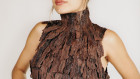 Escultures portables amb restes orgàniques (molsa, fongs, escorça) que proposen una moda en simbiosi amb l’entorn.